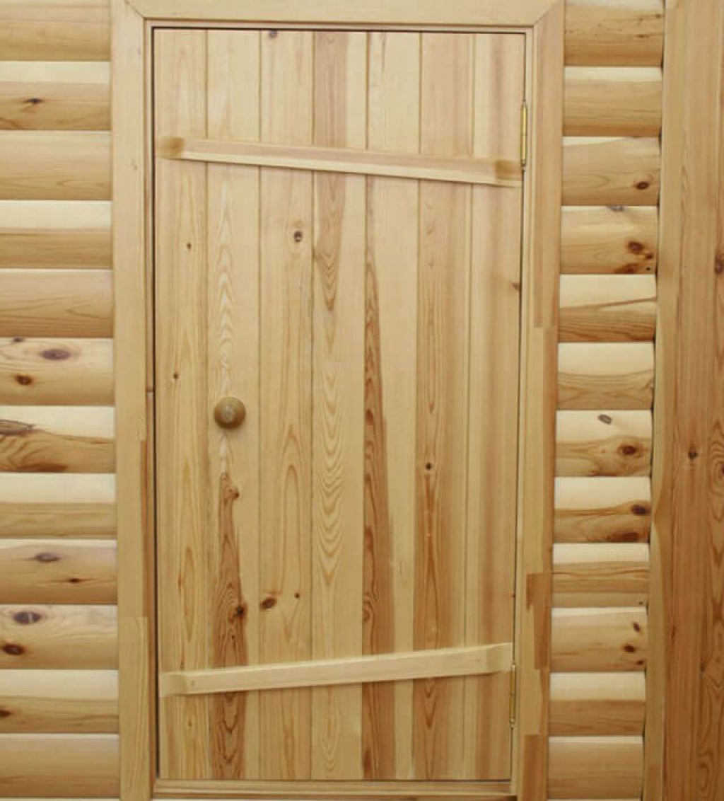 Банная дверь на иглах, из массива липы категории Б изготовлена из 3 слоев древесины с поперечно расположенными волокнами.
