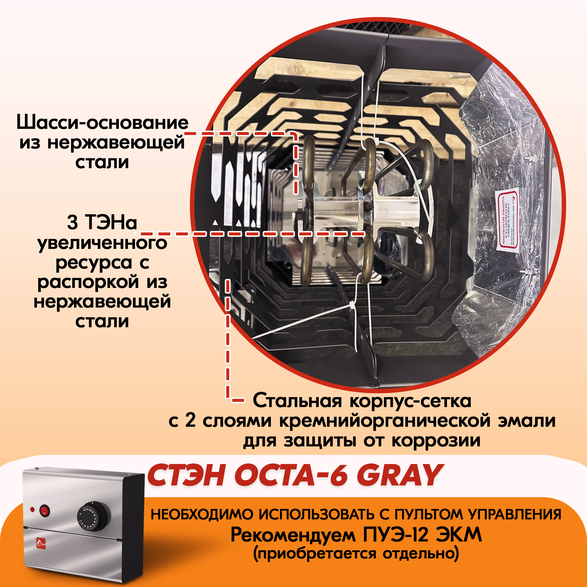 Электрическая каменка СТЭН ЭКМ 6 Octa gray в Калининграде | Доставка по России