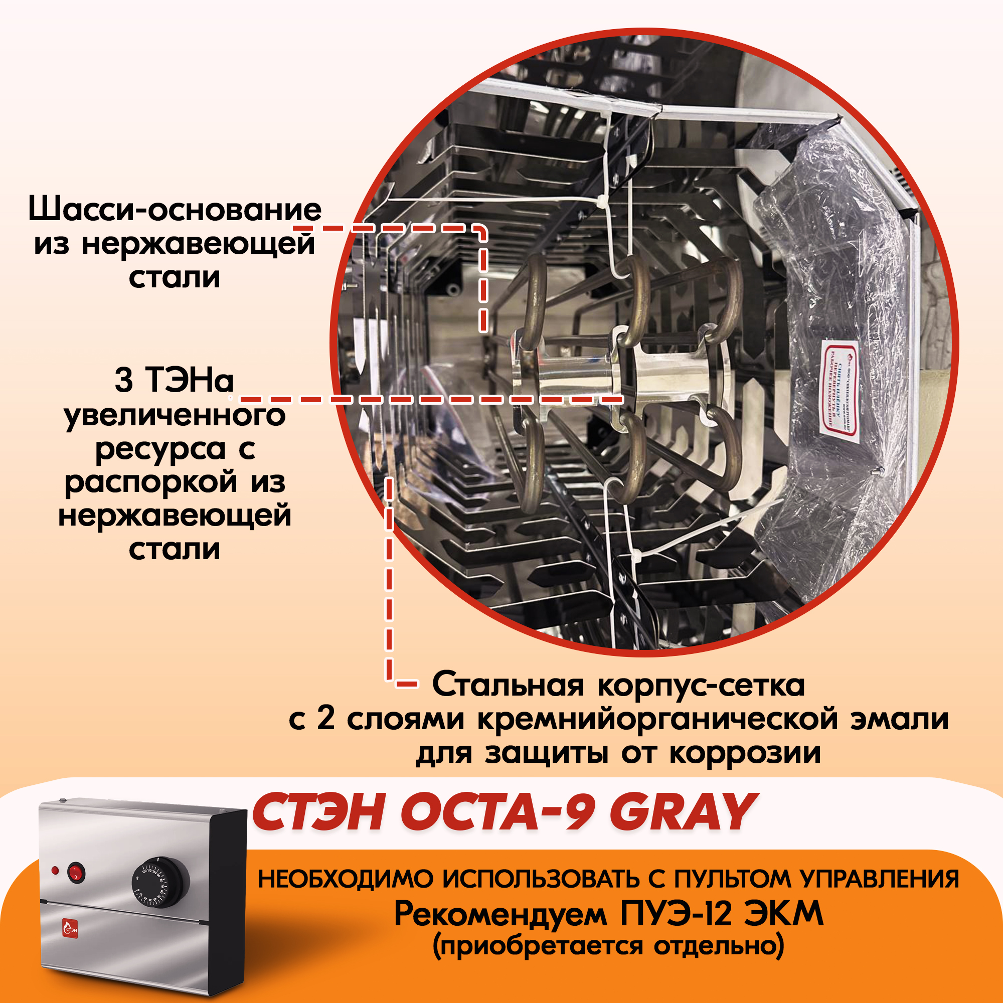Электрическая каменка СТЭН ЭКМ 9 Octa gray в Калининграде | Доставка по России