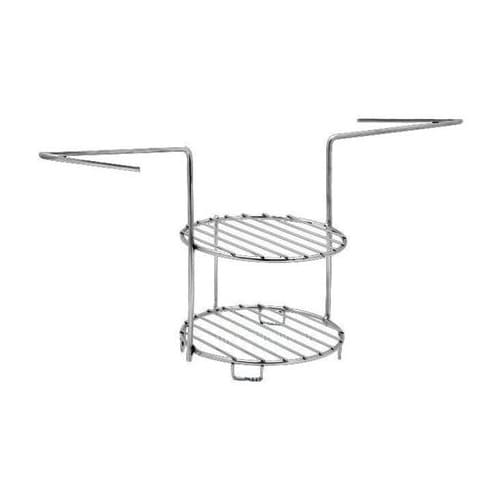 Этажерка (решетка) 2-х ярусная средняя – универсальное приспособление для приготовления овощей, мяса и рыбы. Этажерка поможет Вам приготовить те блюда, которые неудобно готовить на шампурах (рыбные и мясные стейки, овощи, цельную рыбу небольшого размера и многое другое). На этажерке прекрасно получаются комбинированные блюда: на верхнем ярусе готовьте мясо, а на нижнем овощи, которые будут запекаться в этом соке, или наоборот.