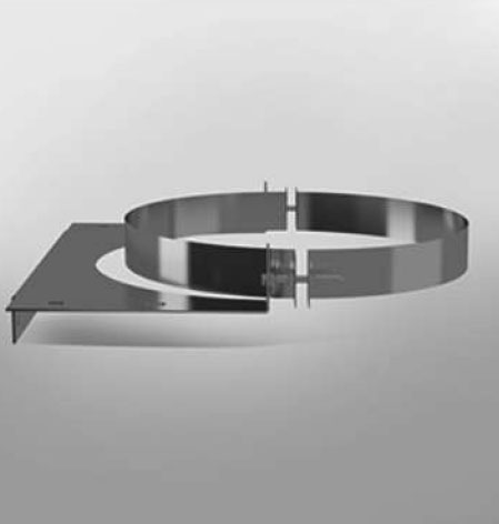 Крепление универсальное КУ - это вспомогательный элемент дымоходной системы, используемый для крепления основных элементов дымохода к внутренней или наружной опорной стене здания или к опорной ферме. Крепление универсальное КУ жестко закрепляет дымоход, поддерживая его конфигурацию.