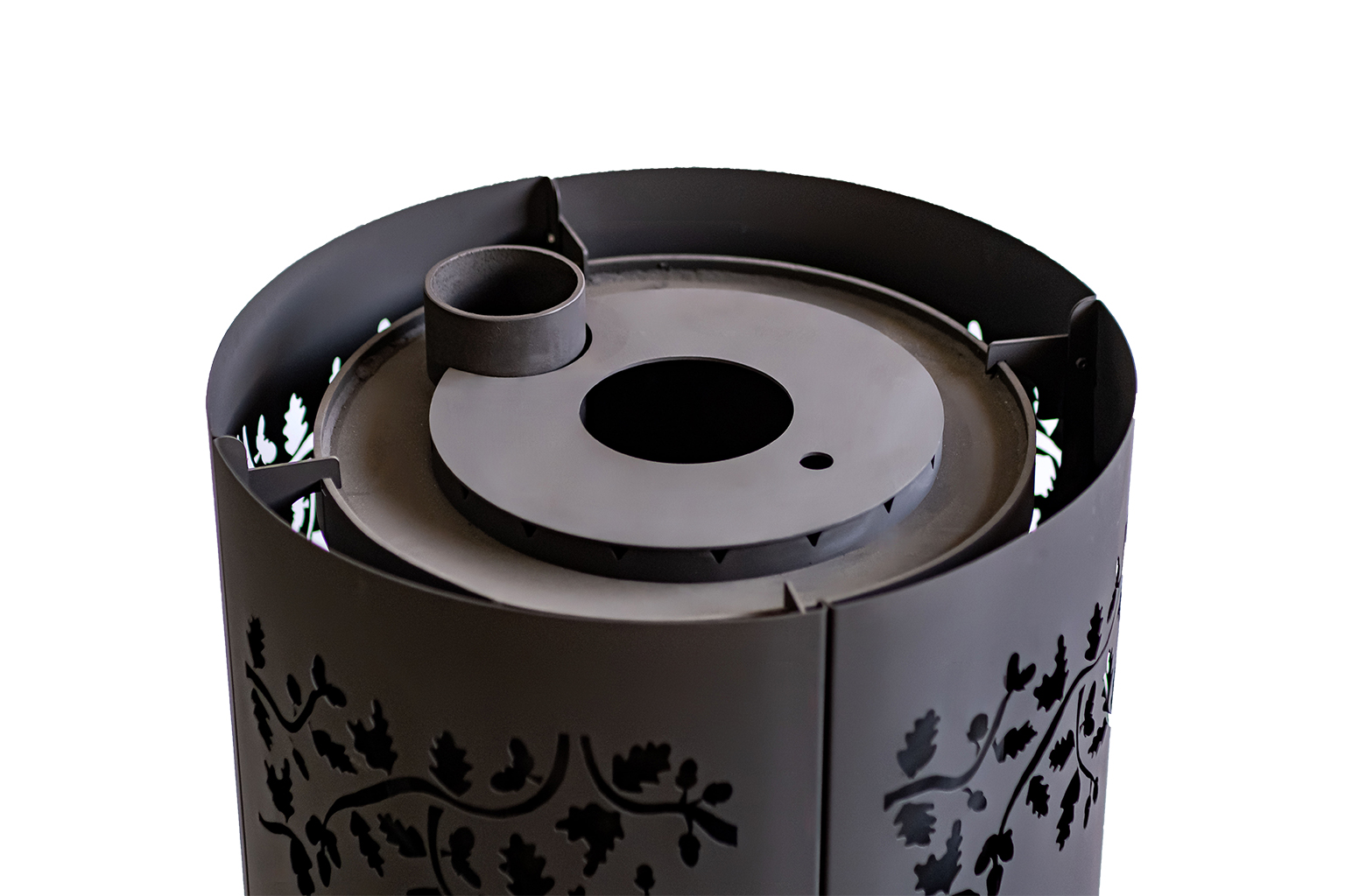 Банная печь «Дубрава» представляет собой стальную конструкцию, выполненную в круглой форме, позволяющая максимально эффективно нагревать парильное и смежные помещения в бане. Отличительной особенностью данной модели является ее уникальная закрытая каменка, которая равномерно нагревается за счет использования винтовой системы дымохода. Внутри каменки нагнетается высокая температура, которая позволяет с высокой скоростью производить нагрев имеющихся камней и удерживать ее на протяжении длительного периода времени. Печь выполнена из стали толщиной 6мм и облицована конвекционным металлическим кожухом, защищающим от инфракрасного излучения.