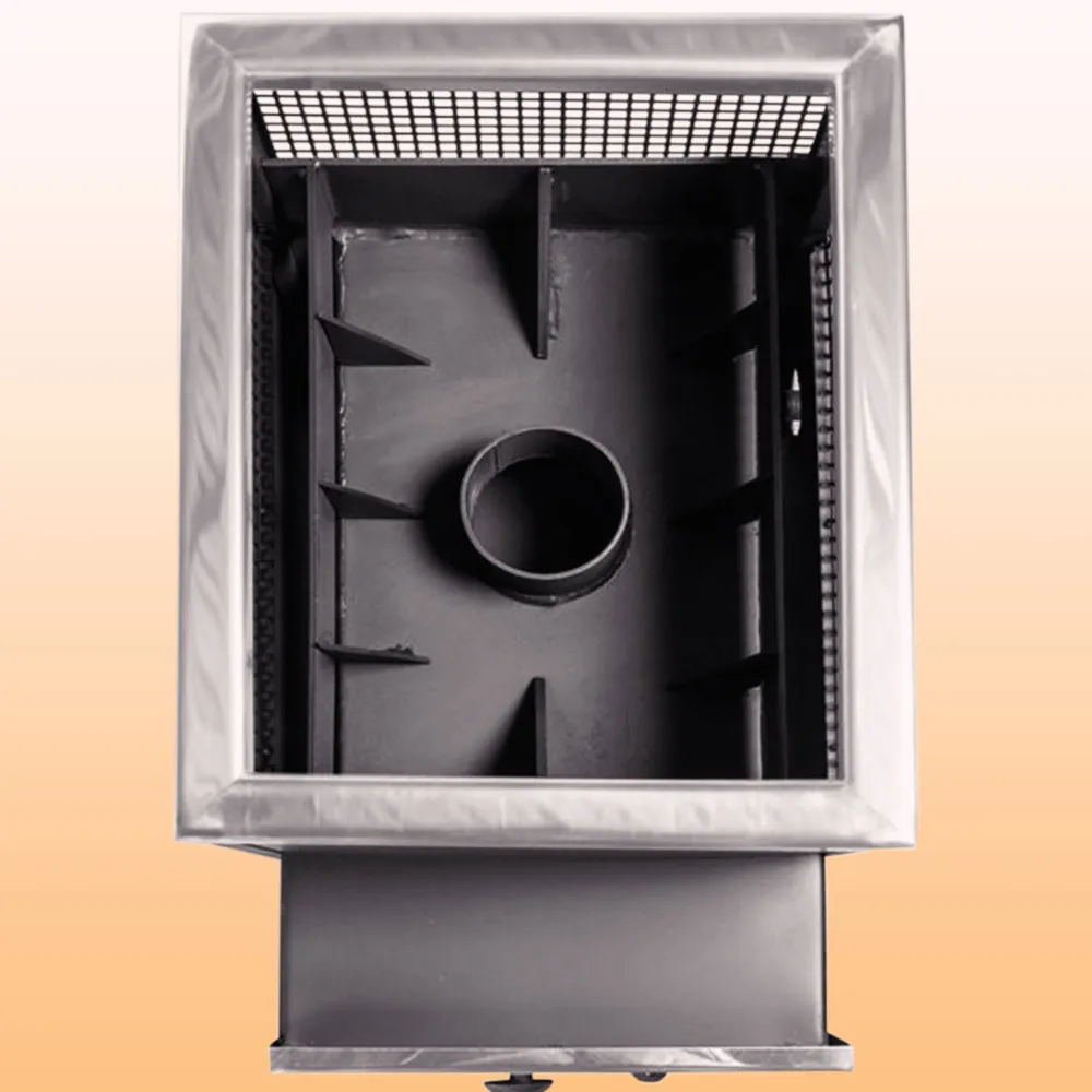 Каменка вмещает камни для бани массой не менее 60 кг.
