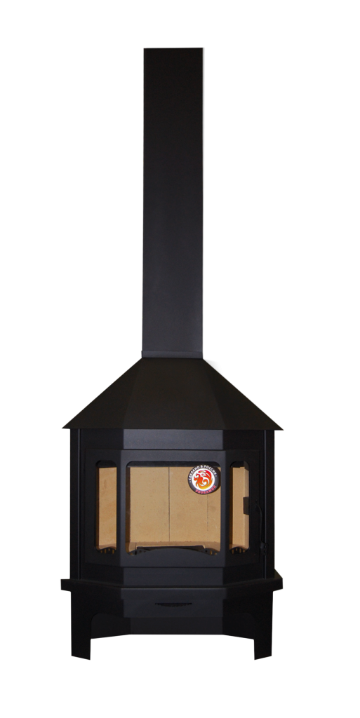 Внутри стальная камера горения облицована шамотными плитами, как защитным материалом, надежно обеспечивающим долгий срок службы стальной конструкции печи.