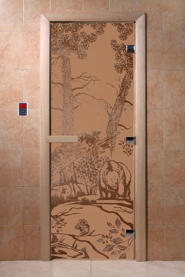 Дверь для сауны "Мишки в лесу" (матовая) 190х70 в Калининграде | Доставка по России