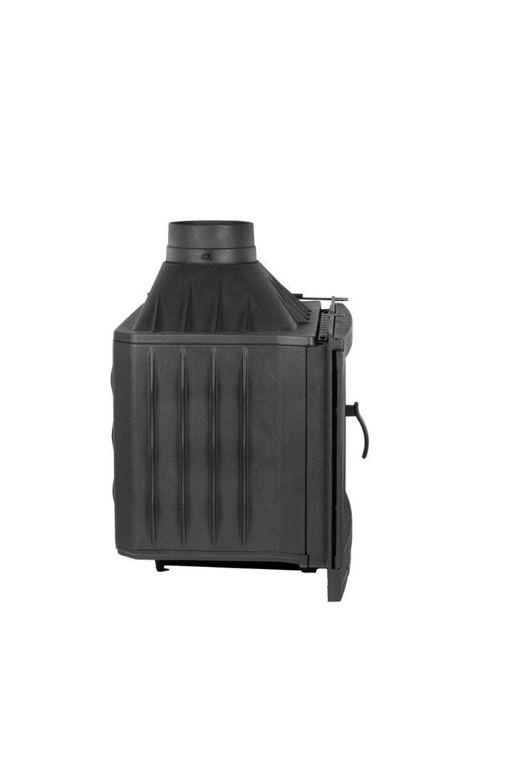 в дверце установлено панорамное стекло толщиной 5 мм с параметрами 580х370 мм (ВхШ), предоставляющее великолепный обзор внутренней части топки и обдуваемое потоками воздуха для недопущения оседания копоти и сажи;