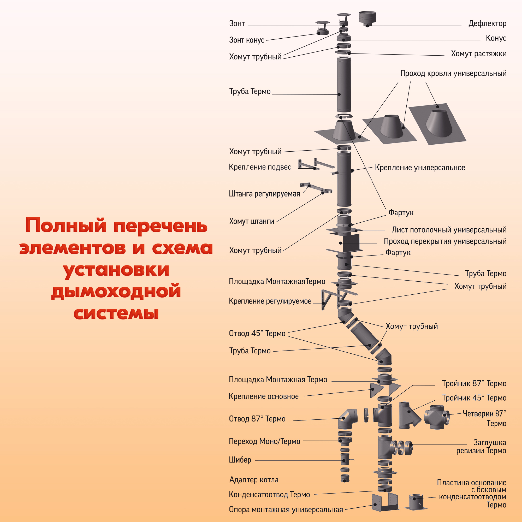 В нашем магазине печей, котлов и дымоходов, кстати, уже имеются все комплектующие для монтажа системы отвода дыма:
