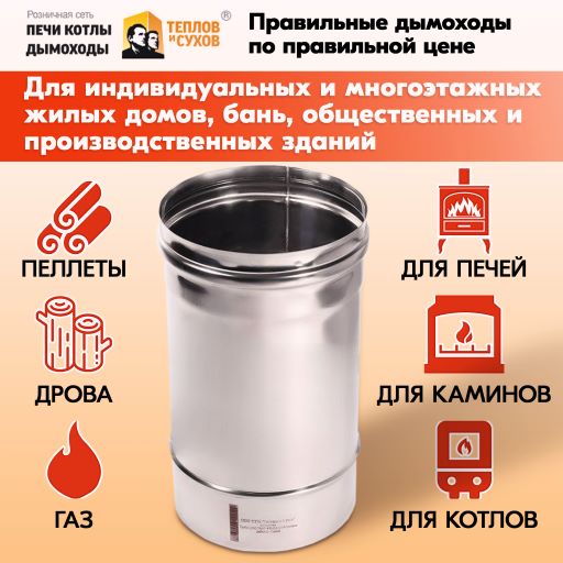 На каждой дымоходной трубе Теплов и Сухов имеется полная информация – наименование, марка стали и толщина металла, область применения.