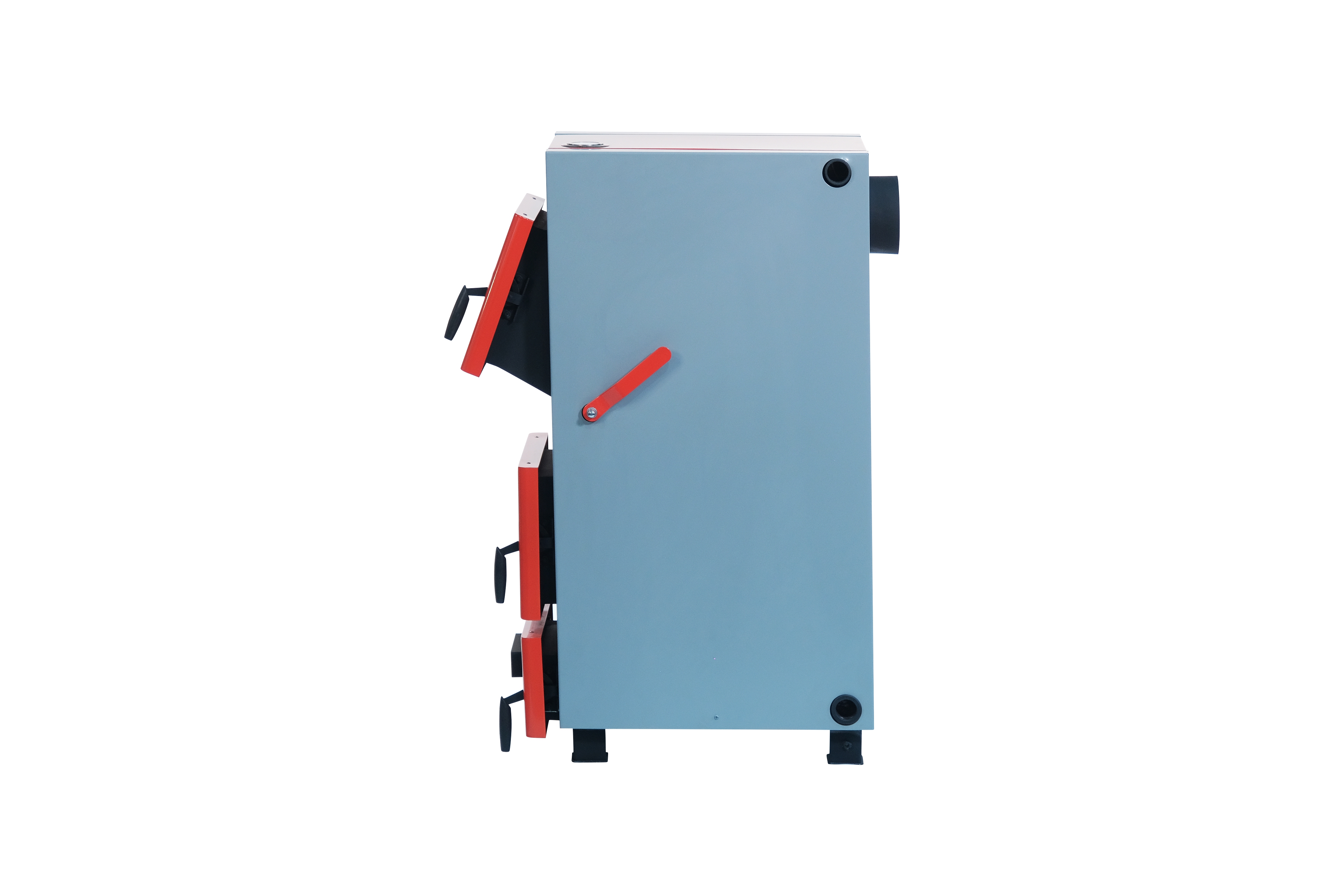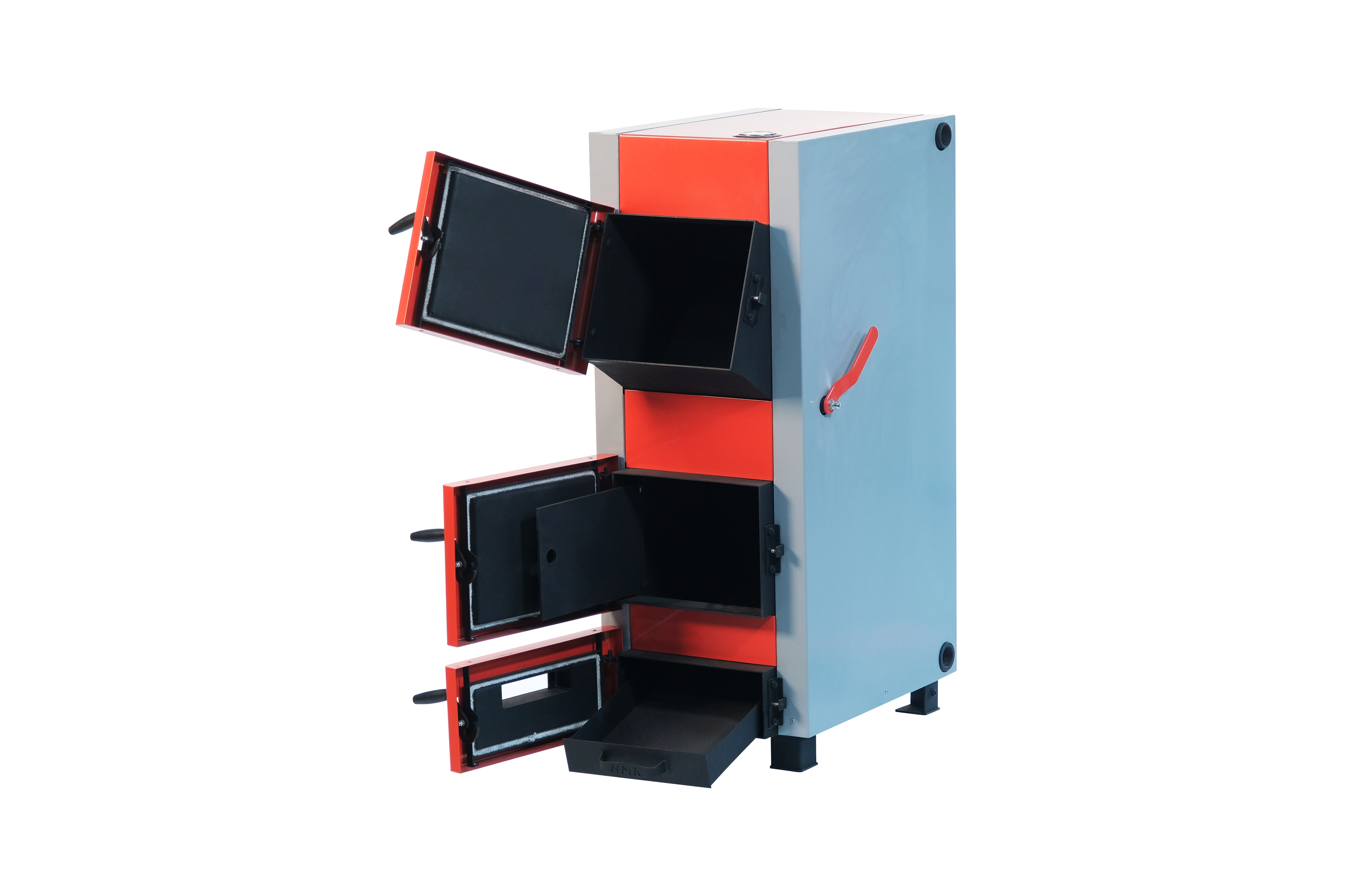 Для регулировки температуры, тяги, контроля пламени используется автоматический регулятор тяги. Котел имеет дверцу специальной конструкции, облегчающую загрузку топлива и уменьшающую риск просыпать уголь.