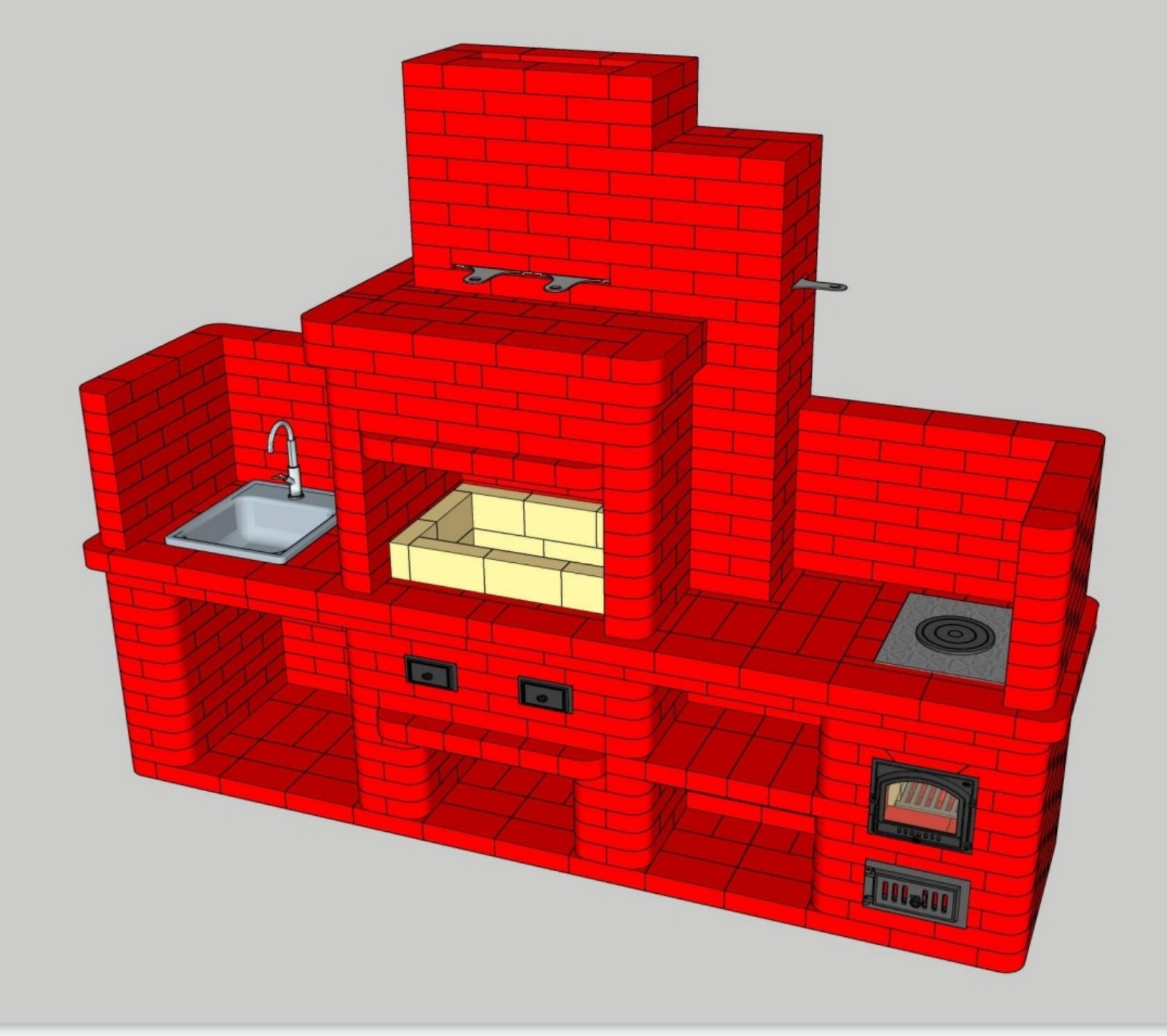 Проект кирпичной барбекю с мойкой с плитой для казана