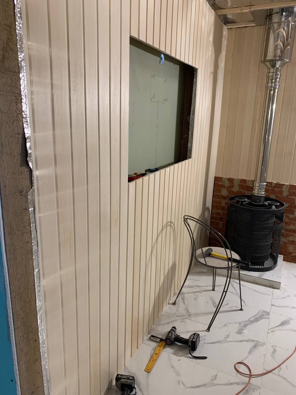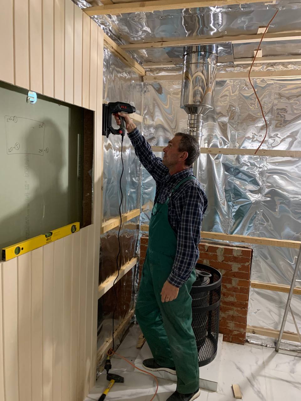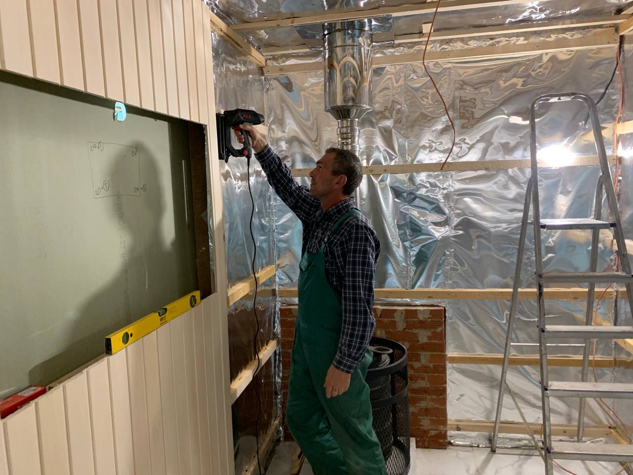 Монтаж банной GFS с установка дымохода, кладка портала
