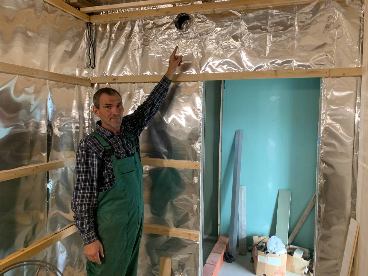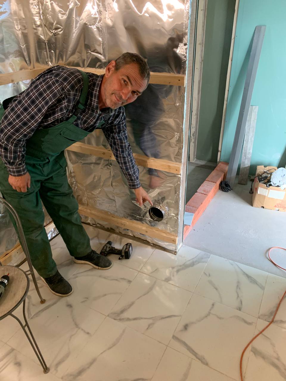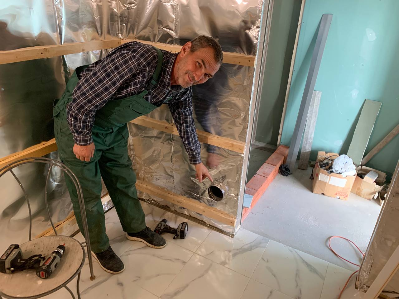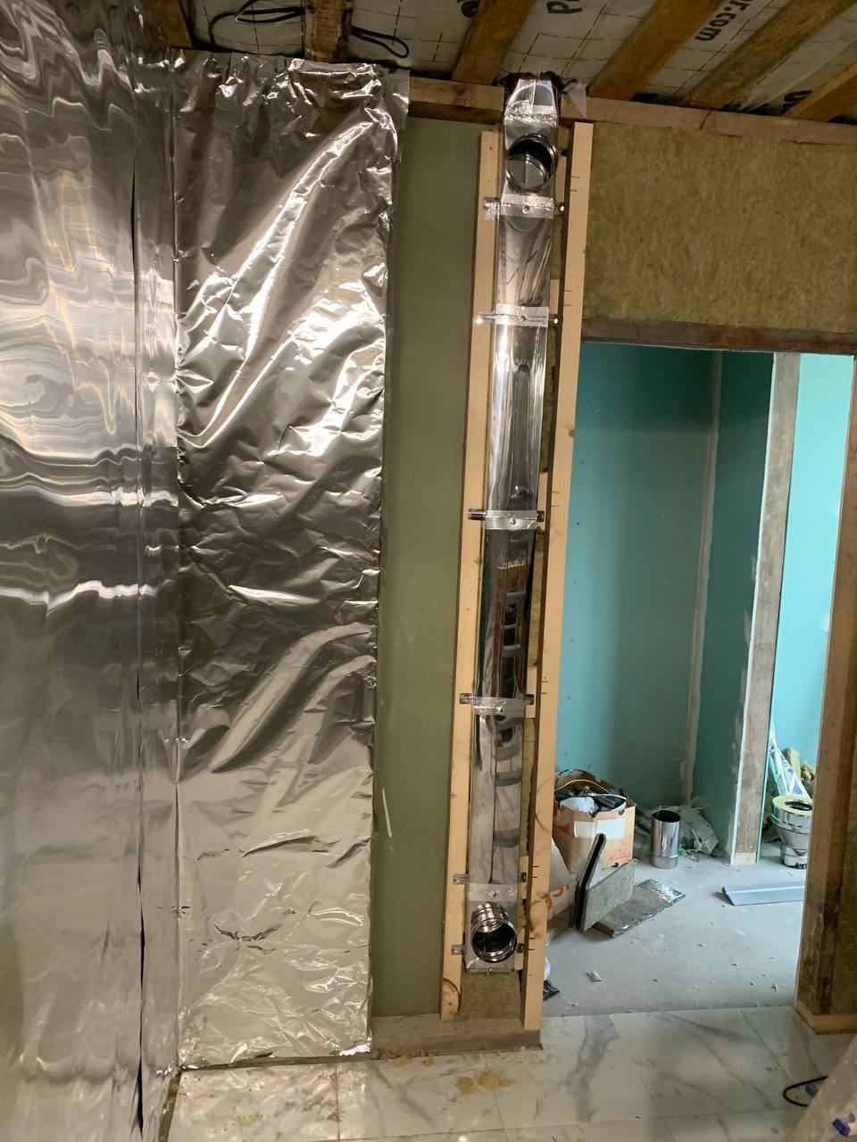 Монтаж банной GFS с установка дымохода, кладка портала